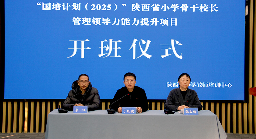 2025年12月8日上午,由陕西省教育厅主办、陕西省小学教师培训中心承办的“国培计划(2025)”陕西省小学骨干校长管理领导力能力提升项目(第二期)开班仪式圆满举行。来自全省各地的近50位小学骨干校长齐聚一堂,共同开启为期一段时间的研修之旅。本次开班仪式由陕西省小学教师培训中心国培省培项目管理部主任张文倩主持;西安美术学院艺术教育学院副院长、陕西省小学教师培训中心副主任于跃波,小教中心艺术美育项目管理部(陕西省教师培训信息管理办公室)主任余江出席。