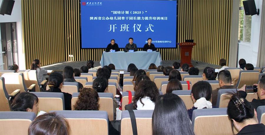 霜降刚过、秋意愈浓的日子里,各位幼儿教育实践者、领路人从三秦大地汇聚于陕西省小学教师培训中心,于2025年10月28日上午举办了“国培计划(2025)”陕西省公办幼儿园骨干园长能力提升项目开班仪式。西安美术学院艺术教育学院副院长、陕西省小学教师培训中心副主任于跃波同志,小教中心艺术美育项目管理部(陕西省教师培训信息管理办公室)主任余江同志出席了本次开班仪式。开班仪式由陕西省小学教师培训中心国培省培项目管理部主任张文倩主持。