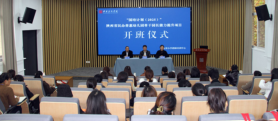 2025年11月12日上午“国培计划(2025)”陕西省民办普惠幼儿园骨干园长能力提升项目第二期的开班仪式在陕西省小学教师培训中心举办。西安美术学院艺术教育学院副院长、陕西省小学教师培训中心副主任于跃波同志、小教中心艺术美育培训项目管理部(陕西省教师培训信息管理办公室)主任余江同志出席了本次开班仪式。开班仪式由陕西省小学教师培训中心国培省培项目管理部主任张文倩主持。
